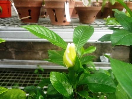 Tanaman hias ini tidak terlalu tinggi. Tanaman punya saya tingginya sekitar 1 meter sudah mulai banyak berbunga. Umur pemeliharaannya dari beli bibit sampai berbunga kurang lebih 6 bulan. Daunnya cukup lebat dengan ukuran rata-rata lebar 4-5cm dan panjang 10-12cm. Bunga berwarna putih dengan bentuk mirip bunga mawar. Baik ketika masih kuncup maupun setelah mekar. Lihat gambar di bawah ini.